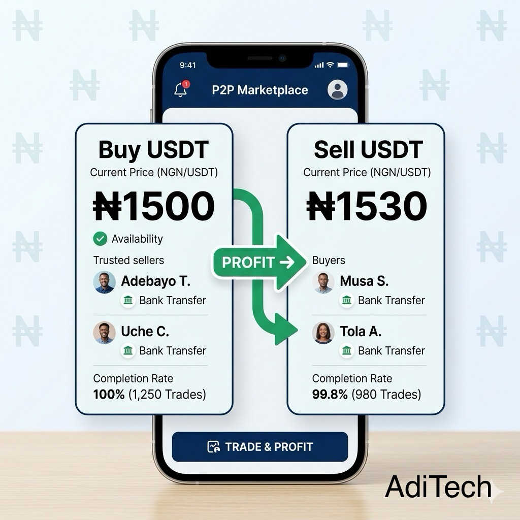 • Buy USDT at ₦1,500 → get ~$66