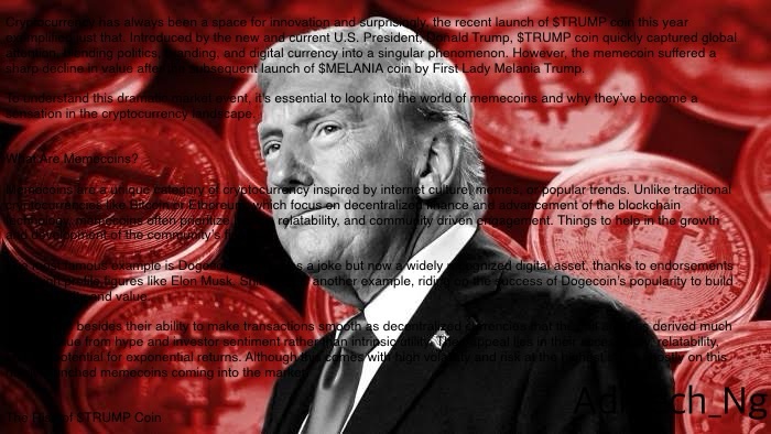 The $TRUMP coin launched which was launched in January 2025 as a bold entry into the memecoin market. Branded as a symbol of patriotism and loyalty to Donald Trump, the coin quickly attracted a massive following among his supporters and crypto enthusiasts alike.